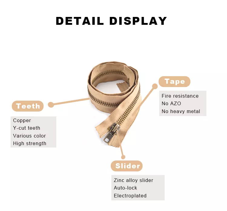 Dây kéo kim loại chống cháy TRC được chế tạo từ vải chống cháy chất lượng cao với đặc tính tự dập tắt tuyệt vời, ngăn chặn hiệu quả dây vải không bị cháy hoặc bốc cháy trong không khí, cải thiện căn bản độ an toàn của quần áo và thiết bị. Nổi tiếng với khả năng chịu nhiệt tuyệt vời, những chiếc khóa kéo này có thể chịu được nhiệt độ lên tới 300°C trong thời gian ngắn mà không bị co lại, nứt hoặc tan chảy. Hiệu suất ổn định và độ bền lâu dài khiến chúng trở thành sự lựa chọn đáng tin cậy để sử dụng trong môi trường khắc nghiệt, nhiệt độ cao.